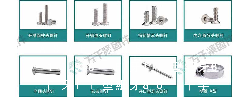 B:球面圓柱頭; C:圓柱頭; F(K):沉頭; H:六角頭;HW:六角頭帶墊圈; O:半沉頭; P:平元頭; R:半元頭;PW:平元頭帶墊圈; T:大扁頭; V:蘑菇頭;④ 螺釘牙型 A:自攻尖尾(日標第1種)疏 外扳擰:六角、六角法蘭面、六角凸緣、六角花形等;內扳擰:一字槽、十字槽H型、十字槽Z型、十字槽F型、四方槽、復合槽、內花鍵、內六角花形、內三角、內六角、內12角、離合器槽、六葉片型槽、高扭矩十字槽等。3、