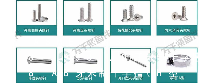 十字槽半沉頭自切自攻螺釘,六角頭自切自攻螺釘。3、自擠自攻螺釘(自攻鎖緊螺釘)自擠自攻螺釘?shù)穆菁y一般為機螺紋,很少采用自攻螺紋。在扳擰方式中,為確保高速自動裝配扳手的使用,一般不推薦采用開槽。自擠自攻螺釘?shù)穆輻U ④頭型 :用字母來表示頭型的種類,可參看前文常用螺釘頭型分類。 ⑤牙型/尾型 : 用字母來表示牙型/尾型的種類,可參看前文“常用螺釘牙型/尾型分類”。 ⑥槽型 :參看前文“我司常用螺釘槽型分類”,十字槽或無槽(如沖六角頭