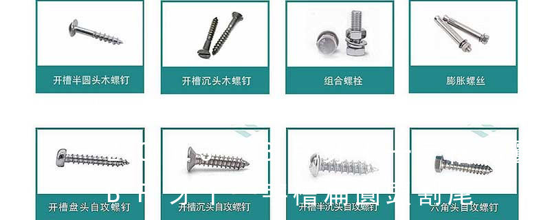 槽型:1.一字2.內三角3.內角四方4.十字5.米字6.花形7.梅花形8.花形一字9.特形10.內六角英文名稱十字槽盤頭組合機絲牙螺釘 采用的是GB818 Cross recessed pan head Combination screws十字槽盤頭機絲牙螺釘 采用的是GB818 Cross