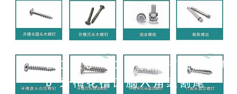 主要分類包括普通螺絲、機螺絲、自攻螺絲和膨脹螺絲三種。有頭螺釘Cap screw 過去限于全牙的扣件。六角頭螺釘Hex cap screw與大六角螺栓Hex bolt 顧名思義為頭部為六角型的外螺紋扣件,設計為使用扳手轉動。依照ASME B18.2. 不銹鋼三角牙螺絲 Stainless Steel Tri-Lobular Thread Screws 型號說明 P是指頭型是PAN頭;A是指尖尾牙,B是指平尾牙,即PA圓頭尖嘴鋼牙,PB圓頭平嘴鋼牙。自攻類:◆圓頭自攻螺絲PA ◆圓頭平尾自攻螺絲PB ◆圓頭割尾自攻