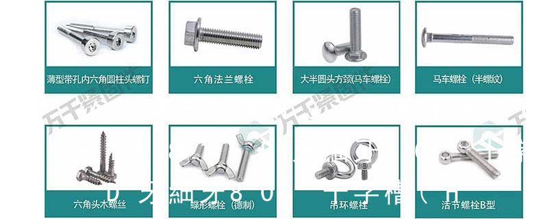 六角花形等;內扳擰:一字槽、十字槽H型、十字槽Z型、十字槽F型、四方槽、復合槽、內花鍵、內六角花形、內三角、內六角、內12角、離合器槽、六葉片型槽、高扭矩十字槽等。3、螺紋種類螺紋種類繁多,有自攻螺紋(